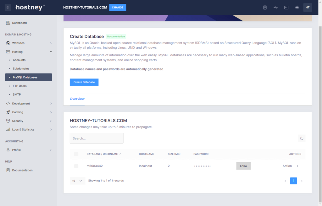 If you host your website with Hostney, you can grab this information by navigating to ‘Hosting’ > ‘MySQL Databases’.