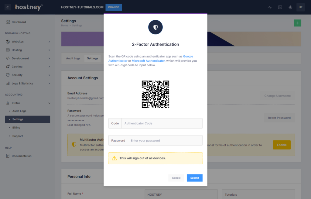 To ensure the utmost security of your hosting account, we highly recommend setting up multifactor authentication (MFA). MFA adds an extra layer of protection to prevent unauthorized access and safeguard your sensitive data. MFA can be enabled for regular accounts.
